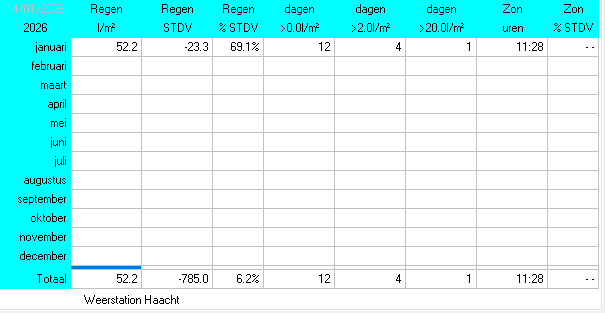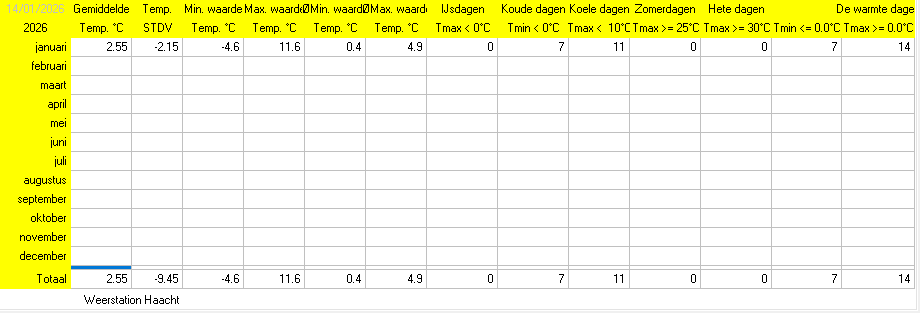 | Laatste maal gevroren 1e semester dit jaar | 11/01/2026 om 00:01 (-2.3°C) |